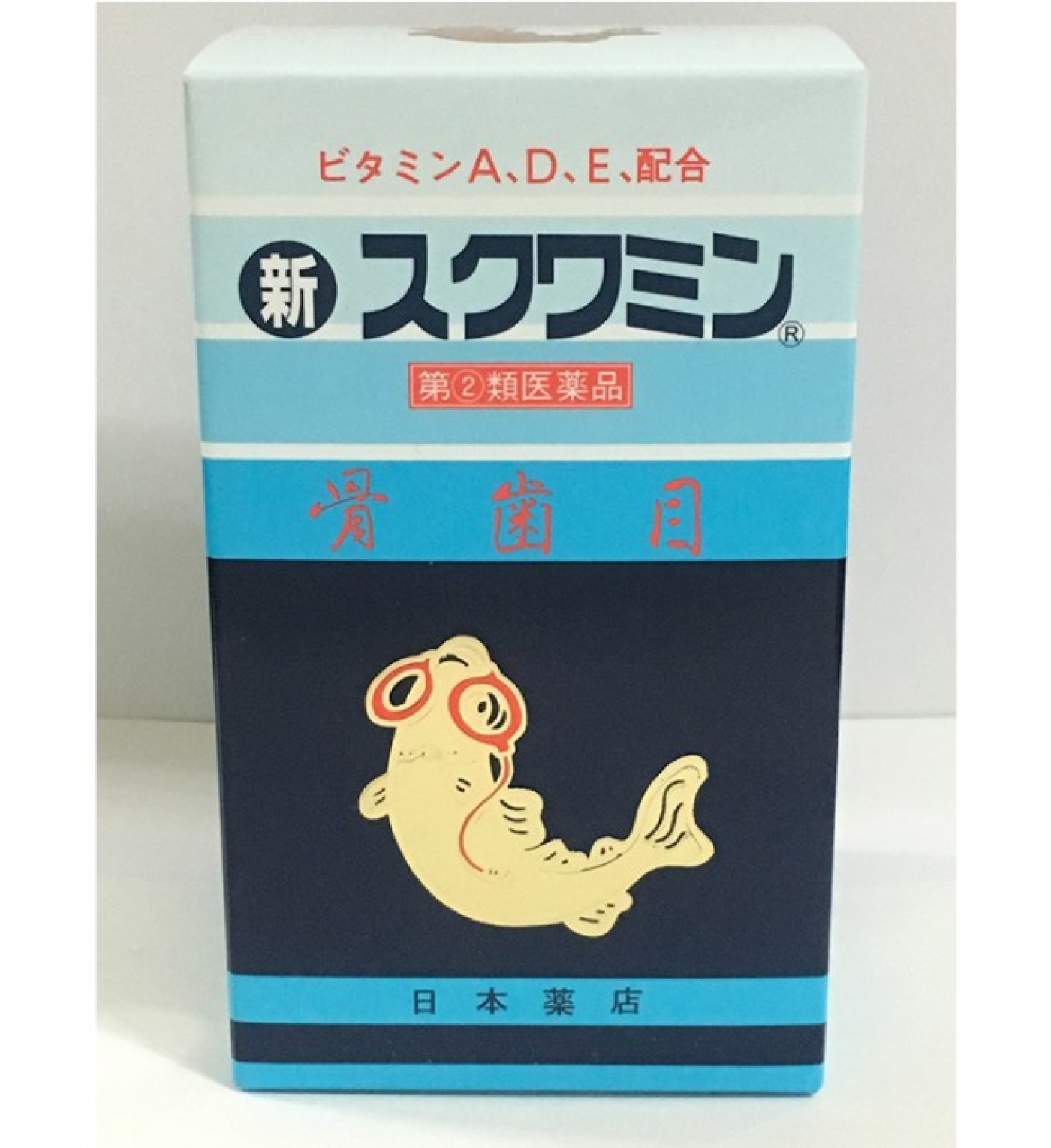 - New Squamin 是一種含有維他命 A 棕櫚酸酯、膽鈣化醇(維他命 D)和生育酚醋酸酯的藥物。